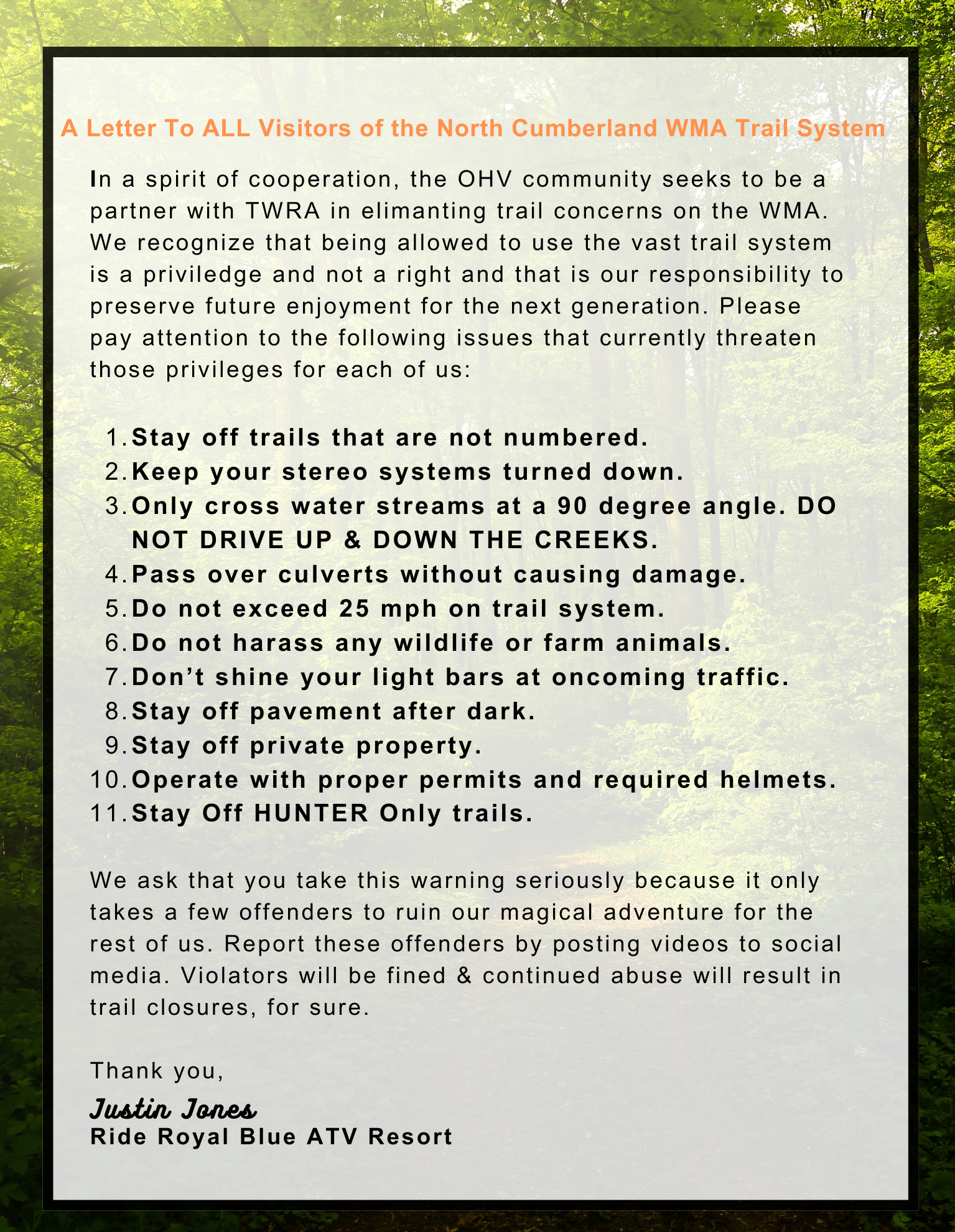 Ride Royal Blue ATV Resort Information & Rules